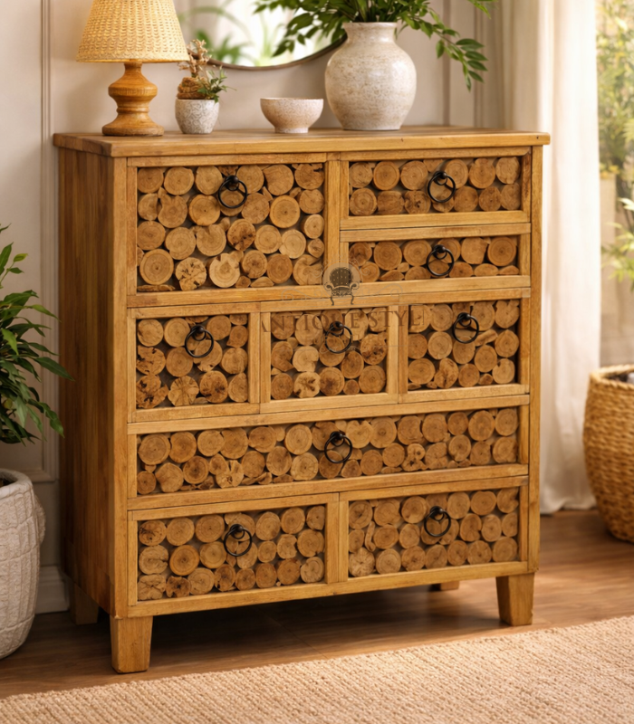 Handcrafted from solid mango wood, this drawer chest showcases timeless craftsmanship and everyday functionality. The rich natural grain and warm finish highlight the character of mango wood, while the sturdy construction ensures lasting durability. Designed with multiple spacious drawers, it offers practical storage without compromising on style. Its antique-inspired detailing adds elegance and depth, making it a refined addition to bedrooms, living areas, or heritage-style interiors.