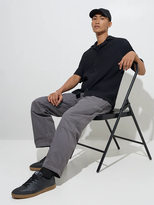 Nuon Black Self-Textured Relaxed-Fit Shirt