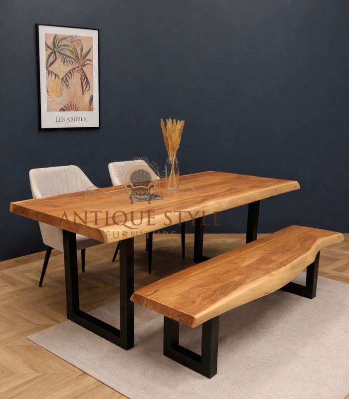 • Matching Bench: Includes a coordinating live-edge bench that slides neatly under the table to save space when not in use.